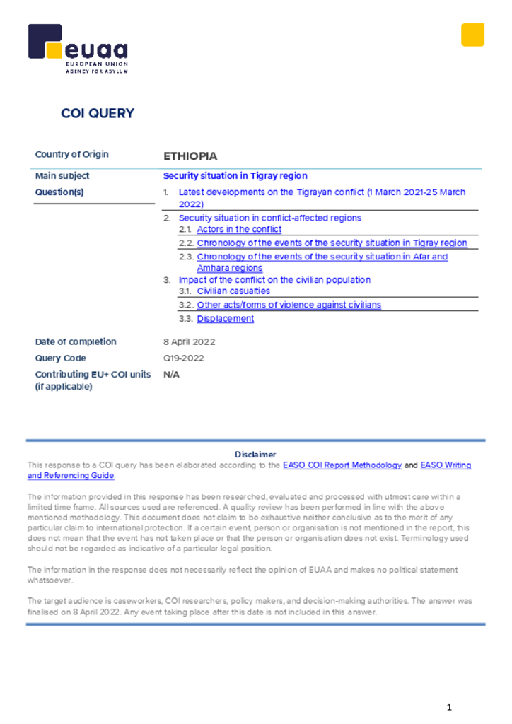 COI Query - Ethiopia: Security Situation in Tigray Region