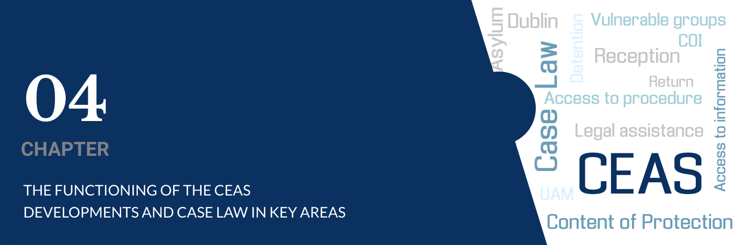 This section is divided into two main thematic parts. The first part, Access to information, offers a summary of the legislative developments and policy initiatives in EU+ countries on this field, including separate parts on audio-visual communication initiatives and new media developments, information needs of vulnerable persons, information provision following the recognition of beneficiaries of international protection and awareness raising activities related to assisted voluntary return and reintegration. It further highlights a number of reported training initiatives on information provision, while also making reference to related concerns raised by civil society organisation and UNHCR. This first part concludes with a brief overview of EASO initiatives in this area. The second thematic part of the section focuses on developments regarding legal assistance and representation. It provides an overview of changes related to the scope and extent of legal aid, and the actors involved in the process, and highlights specific initiatives on the provision of legal assistance to unaccompanied minors. The part also includes civil society perspectives in this area.  Read more...