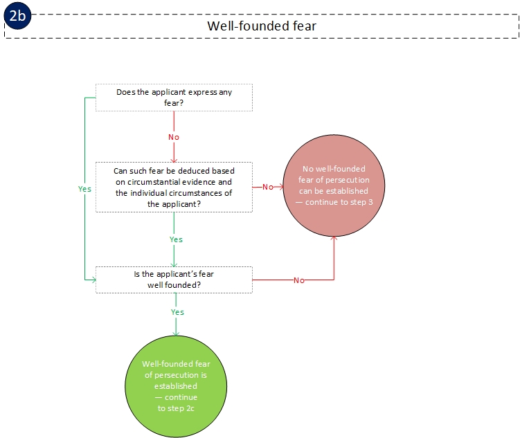 Home EASO Practical Guide: Qualification for international protection Flowcharts Well-founded fear Table of contents Table of Contents Introduction Checklists Guidance General principles Legal framework Individual circumstances Decision-making process ‘Outside the country of origin’: Personal and territorial scope Personal and territorial scope Third-country national Stateless person Importance of determining the country of origin Outside the country of origin Refugee status Persecution and well-founded fear Persecution 1. Is the act a sufficiently severe violation of human rights, taking one of the following forms? 2. Is the act a violation of a non-derogable human right or a sufficiently severe violation of another basic human right? 3. Can the treatment be considered as the accumulation of various measures, the consequences of which would affect the applicant in a similar manner? Well-founded fear Reasons for persecution Race Religion Nationality Membership of a particular social group Common characteristic Perception of distinct identity Political opinion Nexus/(for reasons of) Subsidiary protection Real risk Serious harm Article 15(a) QD Article 15(b) QD Torture Inhuman or degrading treatment or punishment Article 15(c) QD International or internal armed conflict Civilian Indiscriminate violence Serious and individual threat Life or person Nexus (by reason of) International protection needs arising sur place Actors of persecution or serious harm Protection in the country of origin Actors of protection Quality of protection Effectiveness Non-temporary nature Accessibility Internal protection alternative Safety in a part of the country of origin Access to part of the country of origin Reasonableness for the applicant to settle in a part of the country of origin Unwillingness to avail of the protection of the country of origin Flowcharts Preliminary considerations: personal and territorial scope Persecution Well-founded fear Reason for persecution Subsidiary protection Protection in the country of origin Internal protection alternative References Abbreviations and useful links Other resources Legal references and relevant case-law General principles Personal and territorial scope Refugee status: well-founded fear of persecution Reasons for persecution: race Reasons for persecution: religion Reasons for persecution: nationality Reasons for persecution: membership of a particular social group Reasons for persecution: political opinion Nexus (for reasons of) Subsidiary protection: real risk of serious harm Subsidiary protection: death penalty or execution Subsidiary protection: torture or inhuman or degrading treatment or punishment Subsidiary protection: serious and individual threat to a civilian’s life or person by reason of indiscriminate violence in situations of international or internal armed conflict International protection needs arising sur place Actors of persecution or serious harm Actors of protection and quality of protection Internal protection alternative Citation Please cite as: EUAA, 'Well-founded fear' in EASO Practical Guide: Qualification for international protection, January 2022. Copy Share Print Book traversal links for Well-founded fear Previous Parent Next