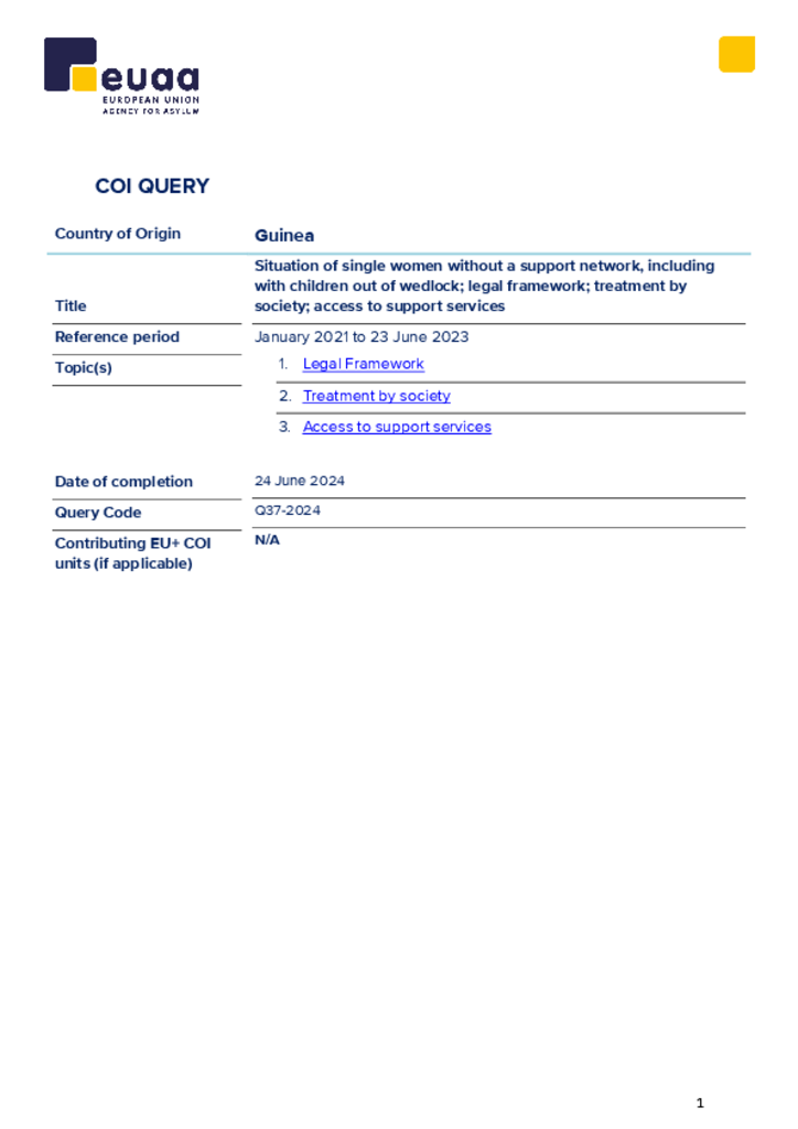 COI Query - Guinea: Situation of single women without a support network, including with children out of wedlock