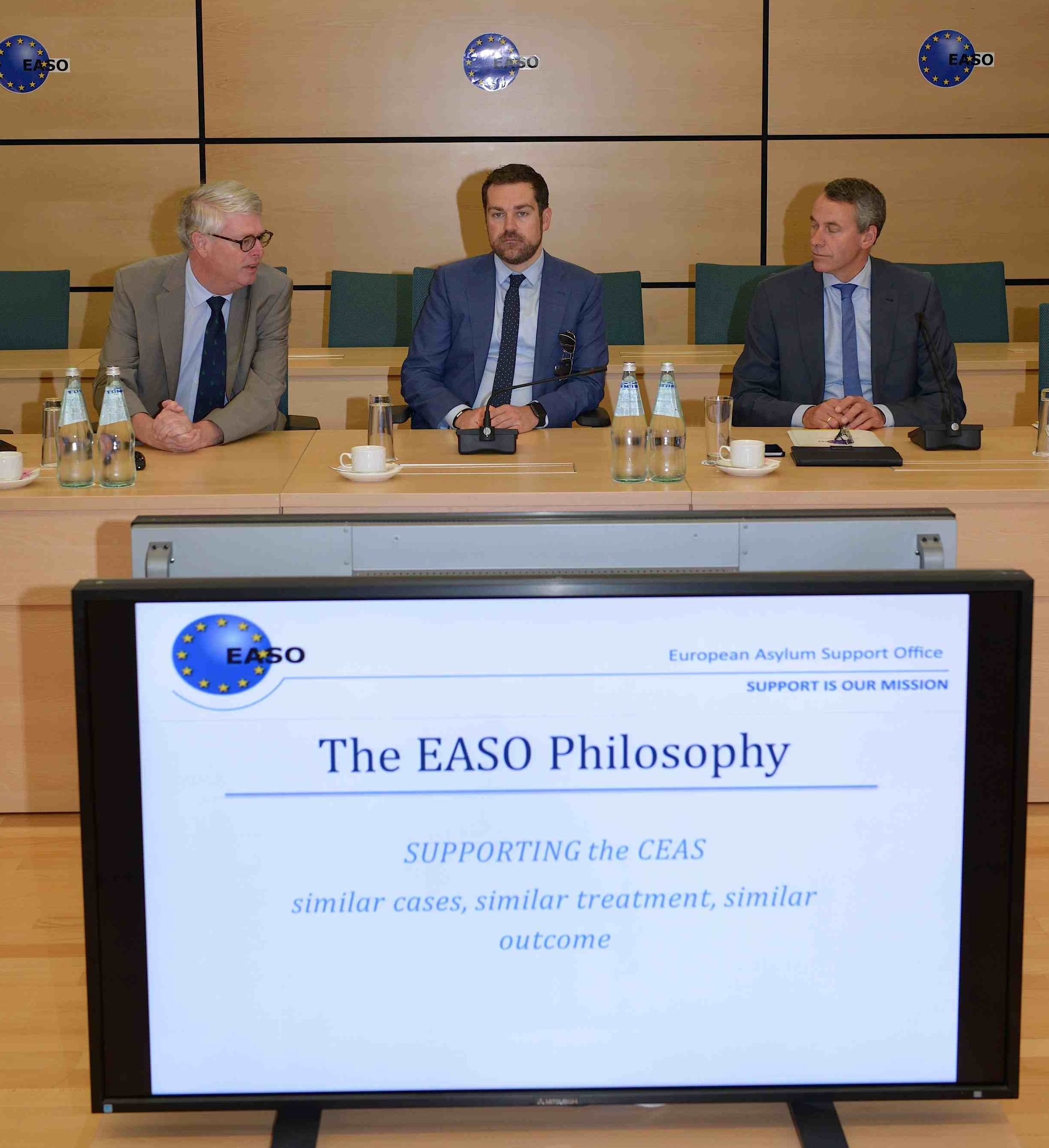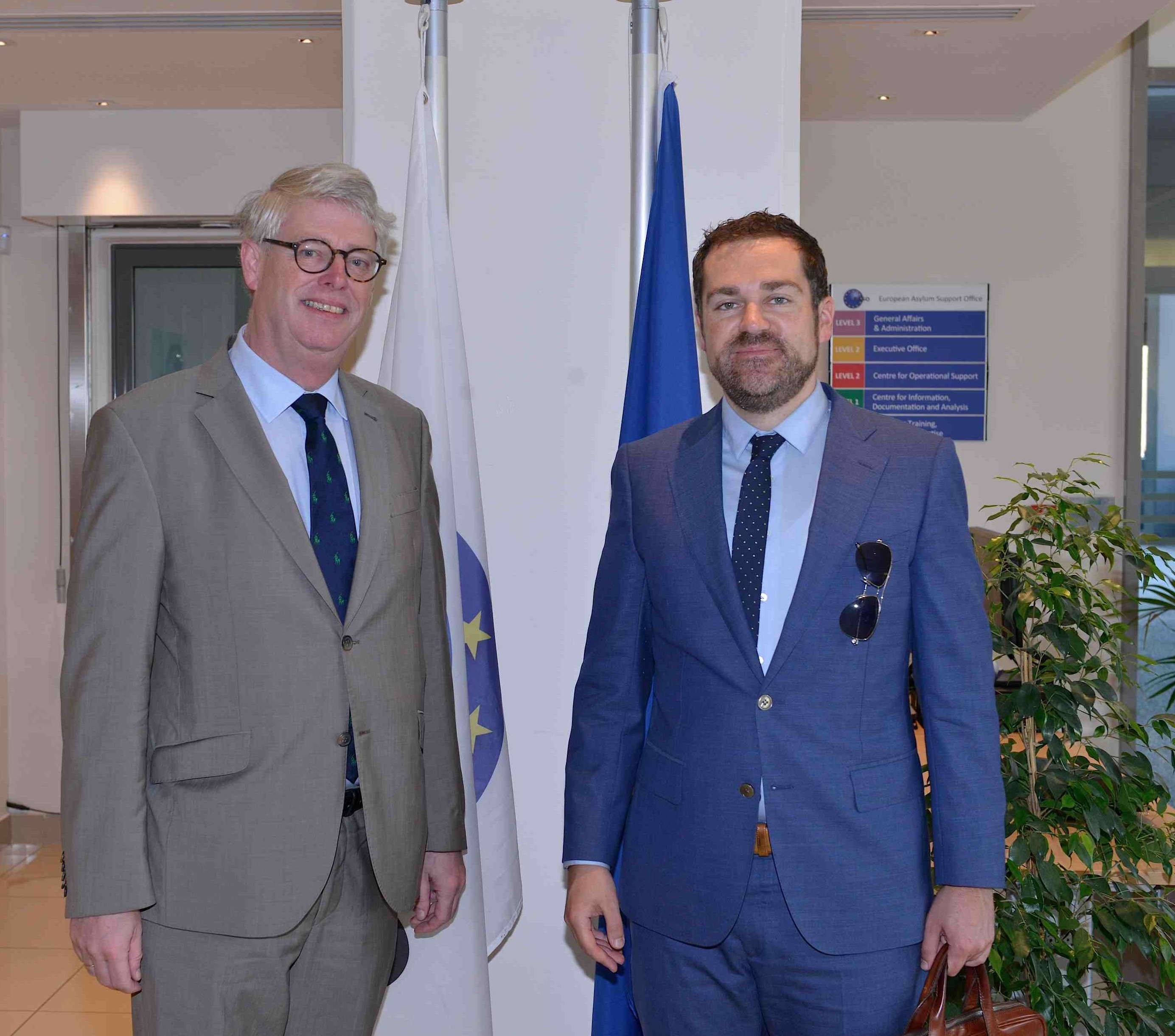 Today, Hon. Klaas Dijkhoff, Dutch Minister for Immigration, visited the European Asylum Support Office (EASO) to discuss the situation of asylum in the EU, EASO’s work, tools and activities vis-à-vis the development of the Common European Asylum Support System. During the visit, Hon. Minister Klaas Dijkhoff met with EASO’s Executive Director, Dr. Robert K. Visser and EASO staff.