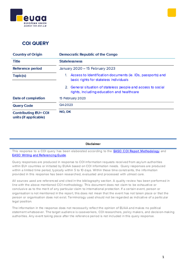 COI Query - DRC: Statelessness