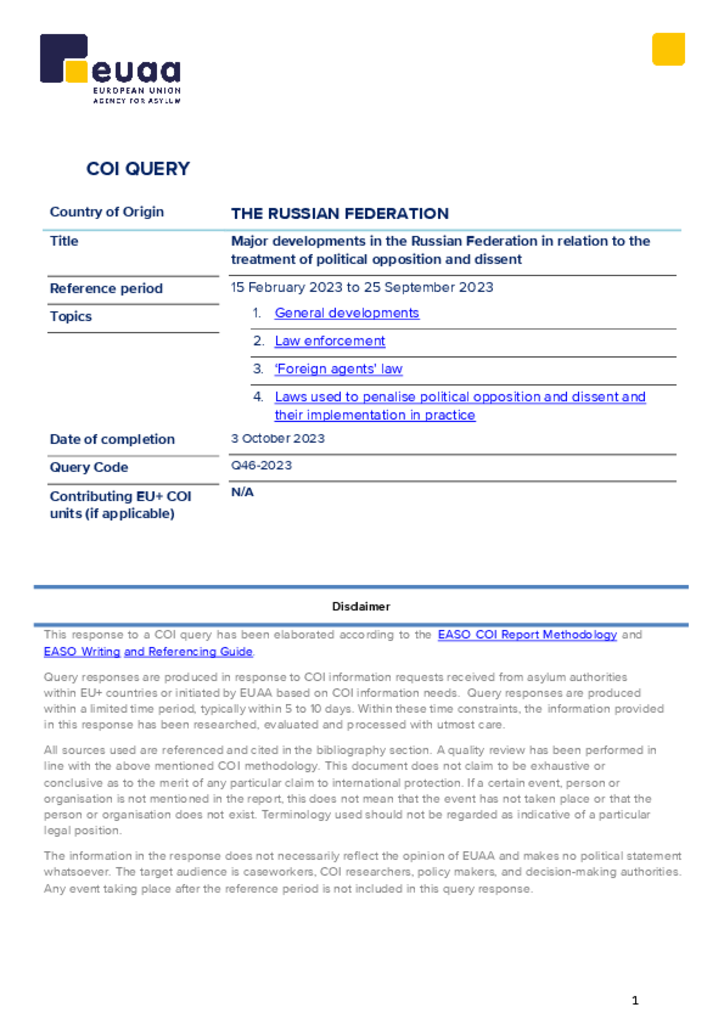 COI Query - Russian Federation: Update - major developments in relation to political opposition and military service