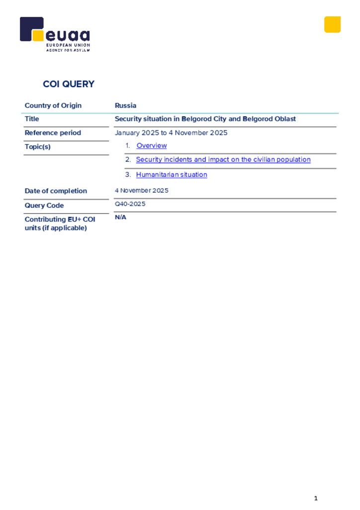 COI Query - Russian Federation: Security situation in Belgorod City and Belgorod Oblast
