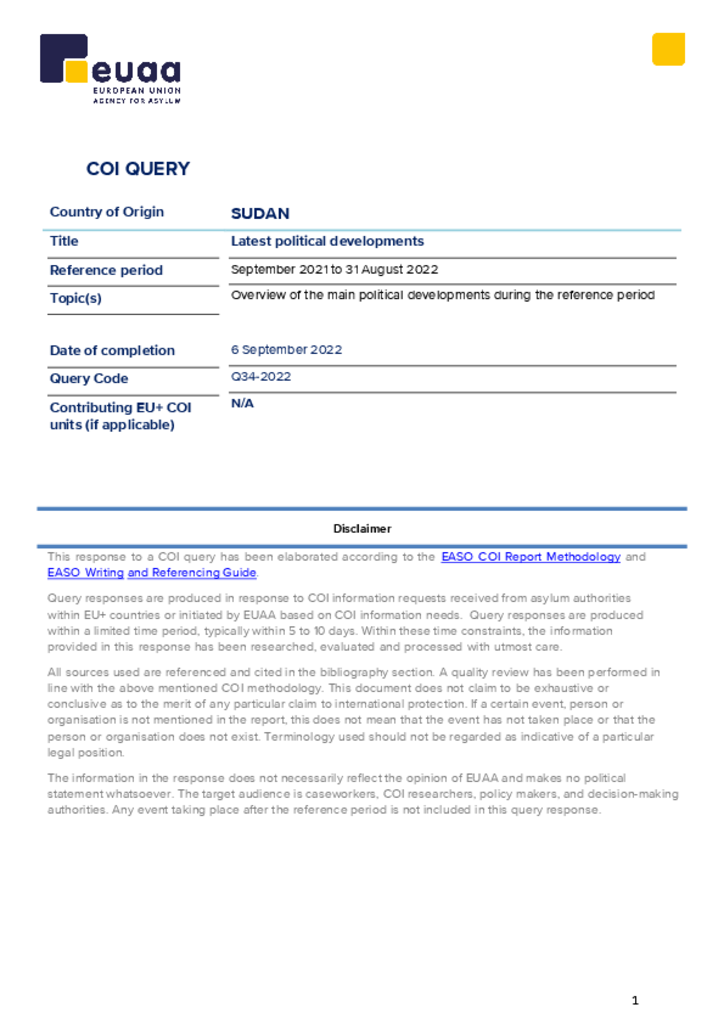COI Query - Sudan: Major political, security, humanitarian and human rights developments