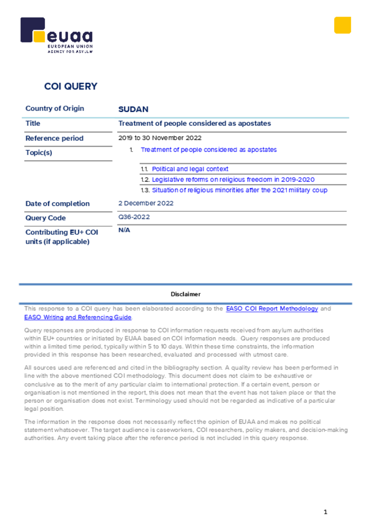COI Query - Sudan: Treatment of People Considered as Apostates