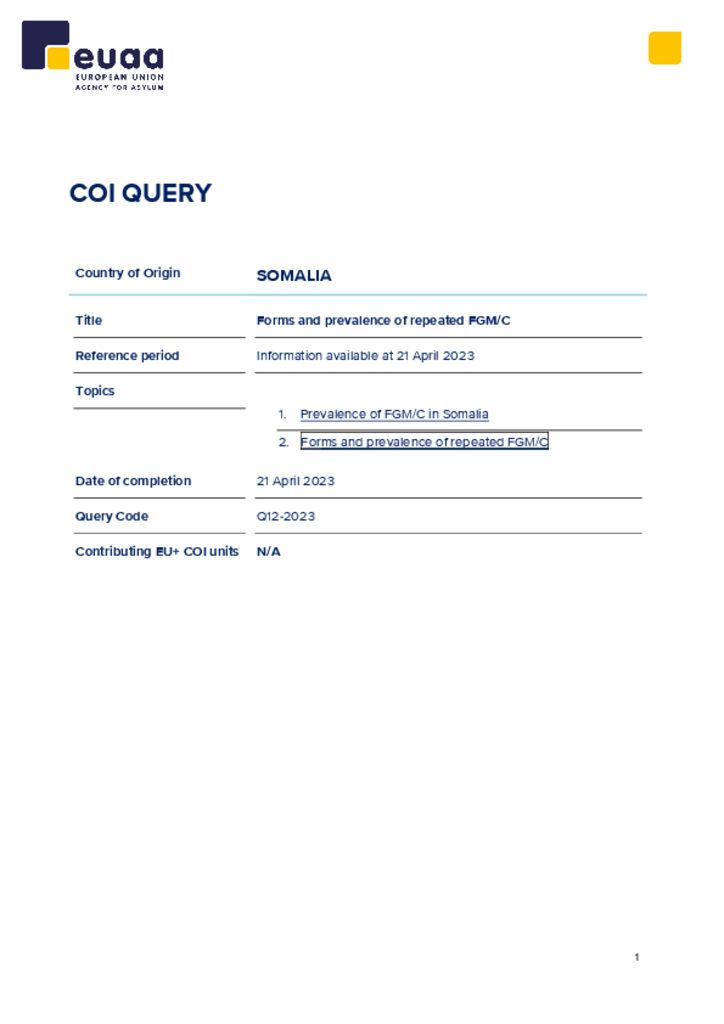 COI Query - Somalia: Forms and Prevalence of Repeated FGM/C
